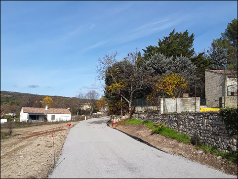 Cette nouvelle voie qui s’appelle désormais "Chemin des Ferrayes" a pour but premier de sécuriser une partie du village. Elle a été réalisée, en un temps record, par l’entreprise Stéphane Fayet, travaux publics à Forcalquier 04300, qui a fait un très bon et beau travail.
