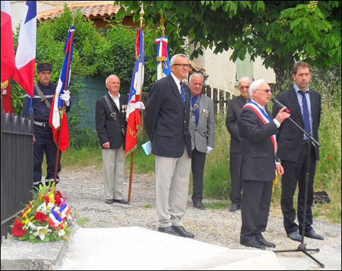 En ce 8 juin 2013 à midi, Jacques Lartigue président de l'Amicale des Anciens Combattants de Forcalquier a orchestré une belle cérémonie devant le monument aux morts de Sigonce en présence de la population et les personnalités de Forcalquier et de Sigonce.