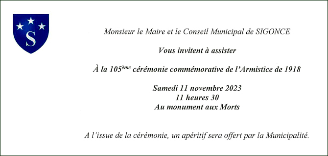 Sigonce ... novembre 2023 ... cérémonie du 11 novembre 1918.