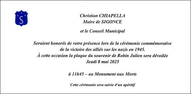 Sigonce ... 8 mai 2025 ... cérémonie du 8 mai 1945.